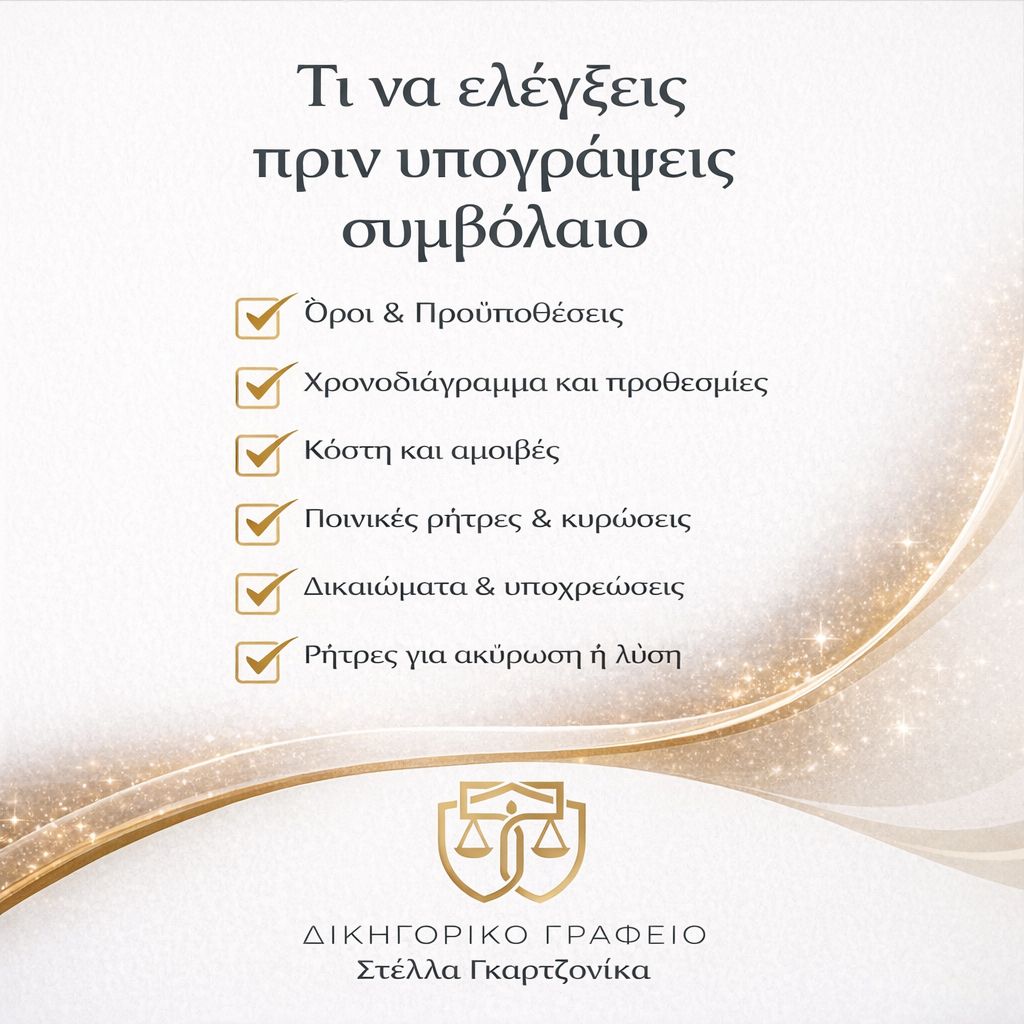 Η δικηγόρος Στέλλα Γκαρτζονίκα προσφέρει αξιόπιστες και εξειδικευμένες νομικές υπηρεσίες με επαγγελματισμό και σεβασμό προς τον εντολέα. Στόχος μας είναι η ουσιαστική υποστήριξη κάθε υπόθεσης με υπευθυνότητα και διαφάνεια.